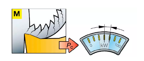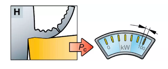 虽然每mm3(立方英寸) 需要的功率低,但为获得高金属去除率,仍需要计算所需的最大功率。